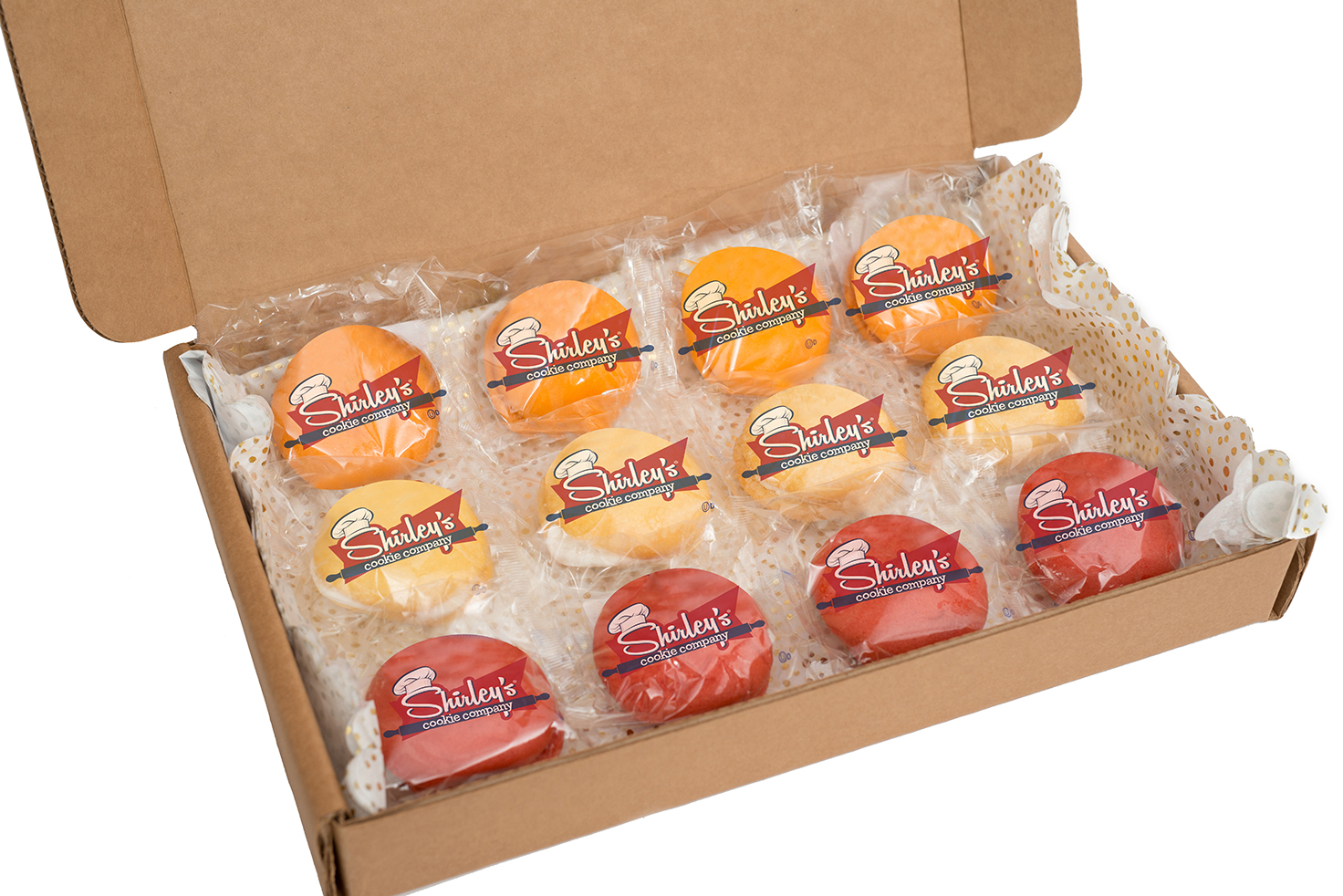 For the liveliest of Whoopie Pie enthusiasts, we suggest our bright and fruity assortment offering a colorfully festive ensemble of Strawberry, Orange Creamsicle and Soft Sugar Cookie deliciousness sure to please. Great for meetings, personal thank you or reminders just to say you care. Four of each flavor.