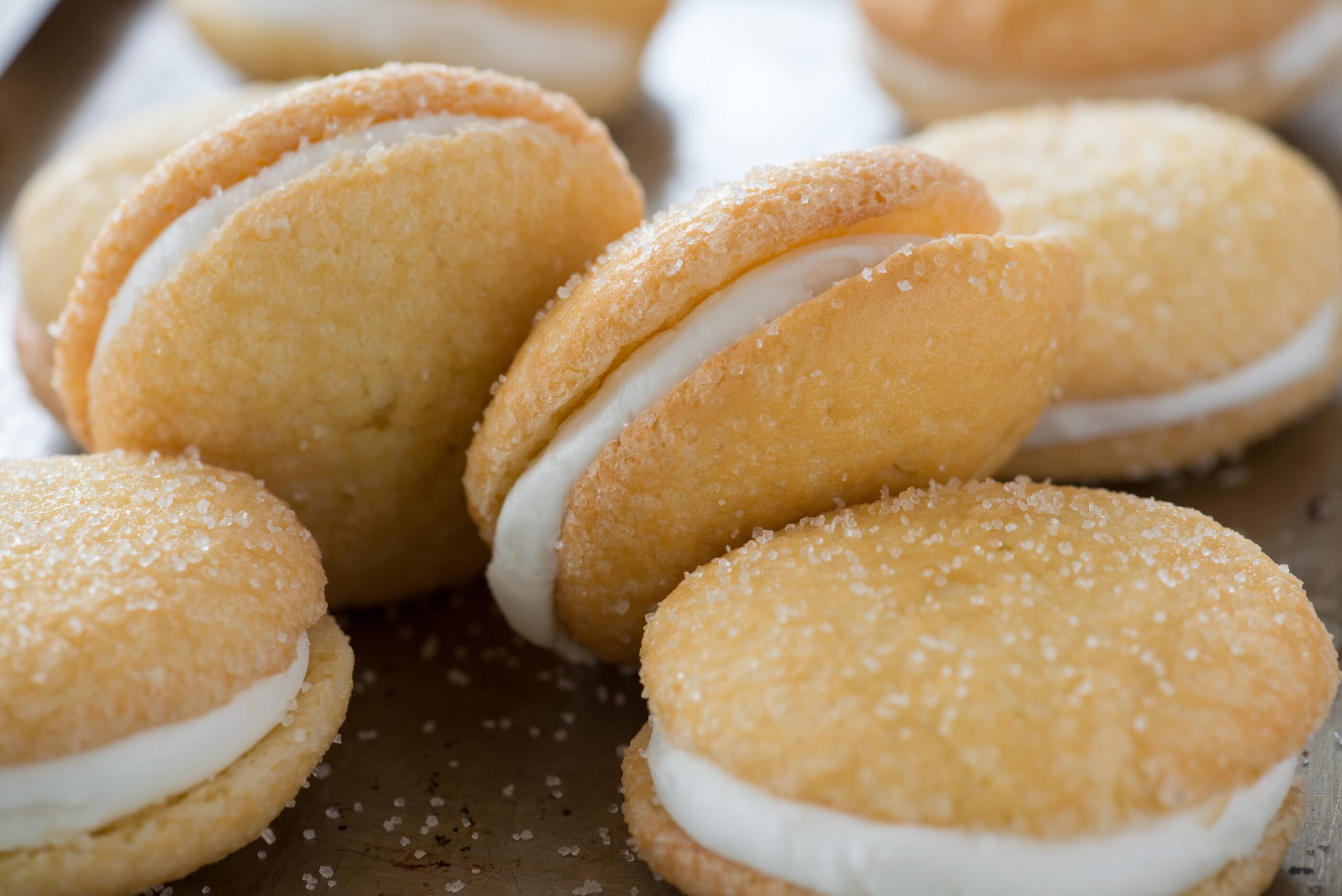We all remember grandma’s sugar cookies! Our Soft Sugar Cookie Whoopie Pie is not only a tongue twister to say, but a sweet delicious memory of home baked soft sugar cookie cake sandwiched with vanilla icing center. One dozen.